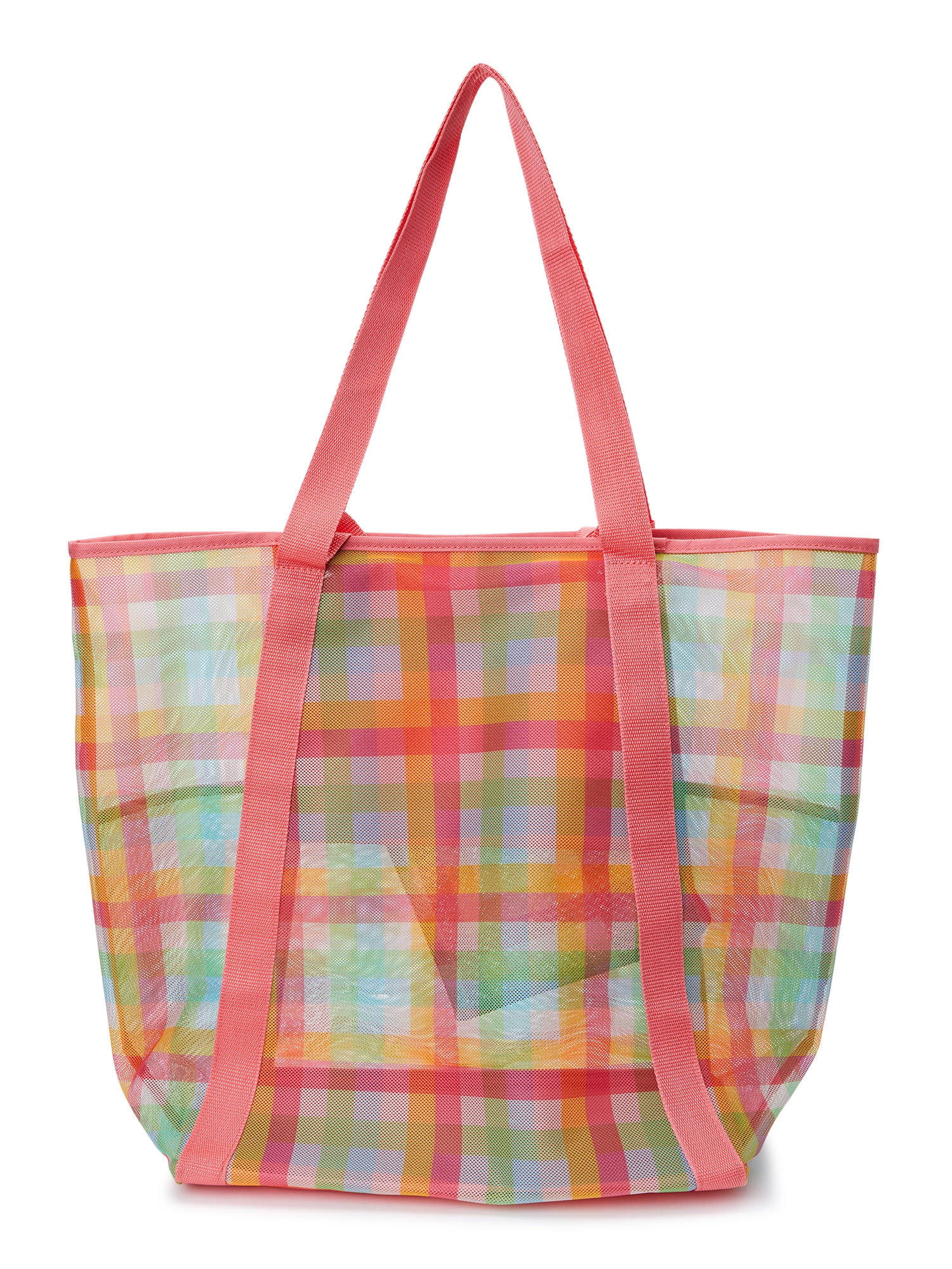 Time And Tru Women S Mesh Beach Tote Handbag Tropical Lily Walmart Com